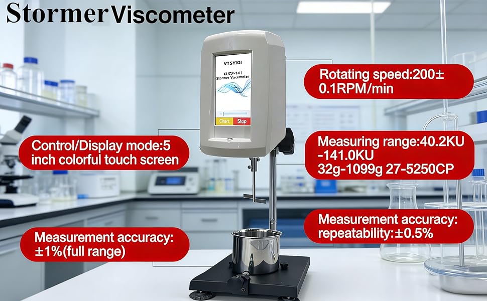 VTSYIQI Stormer Viscometer Viscosity Tester Viscosity Meter Paint Ink Viscosity Meter with 5 inch Colorful Touch Screen KU Value Digital rotational viscometer Rotary visometer