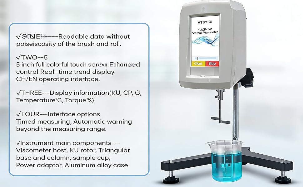 VTSYIQI Stormer viscometer Viscosity Tester Viscosity Meter Paint Ink Viscosity Meter with 5 inch Colorful Touch Screen KU Value Digital rotational viscometer Rotary visometer