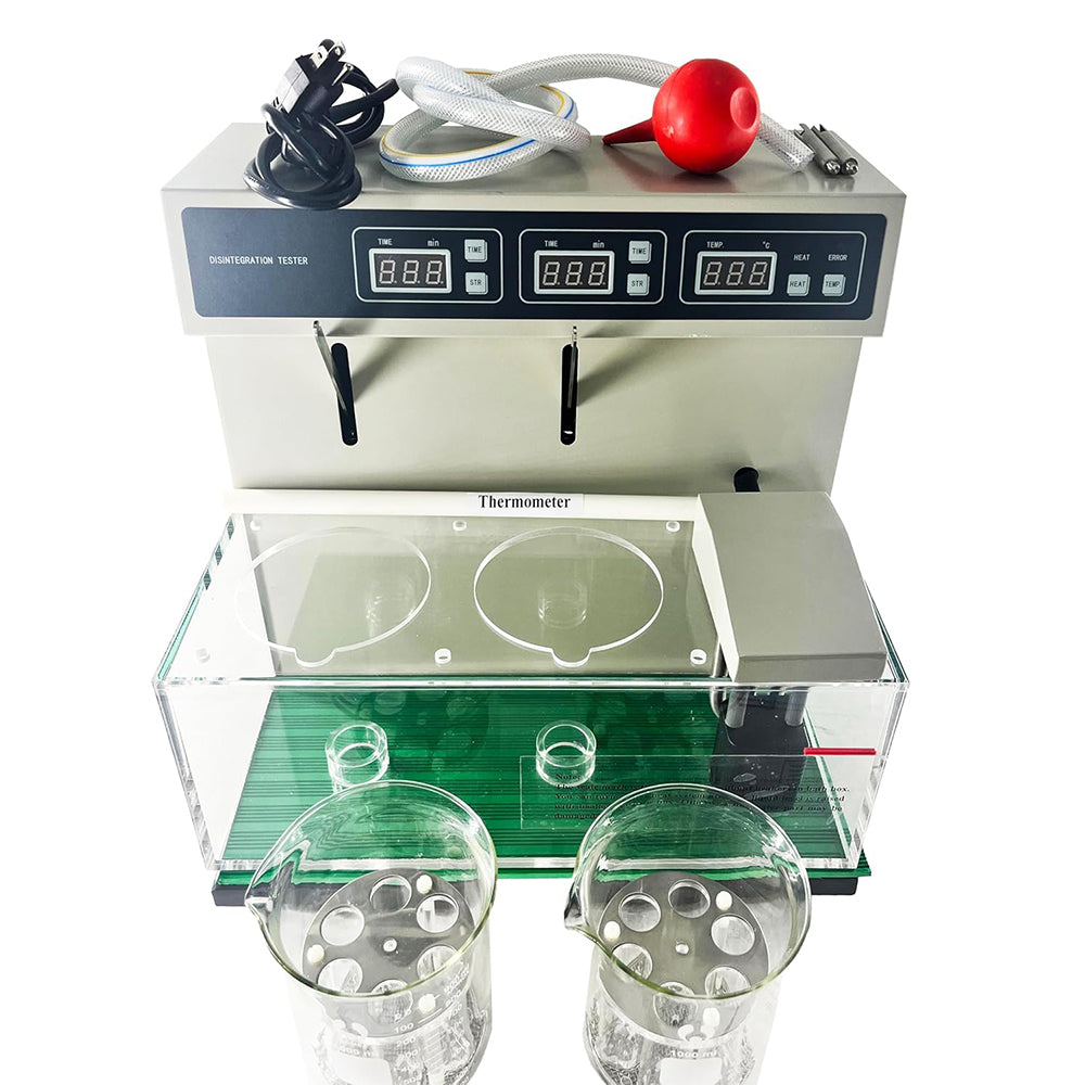 VTSYIQI Tablet Disintegration Tester Disintegration Time and Limit Tester with 12 Tubes 2 Basket Assembly Flat Bottom Beaker Volume 1000ml Basket Round-Trip Frequency 30 to 32 Times/min Auto-Test Auto-diagnose Auto-Alarm