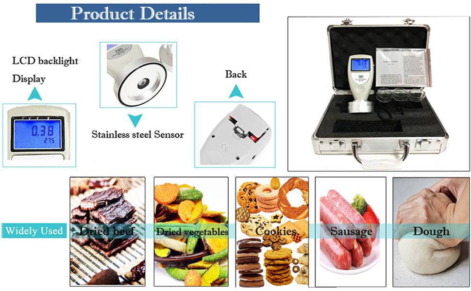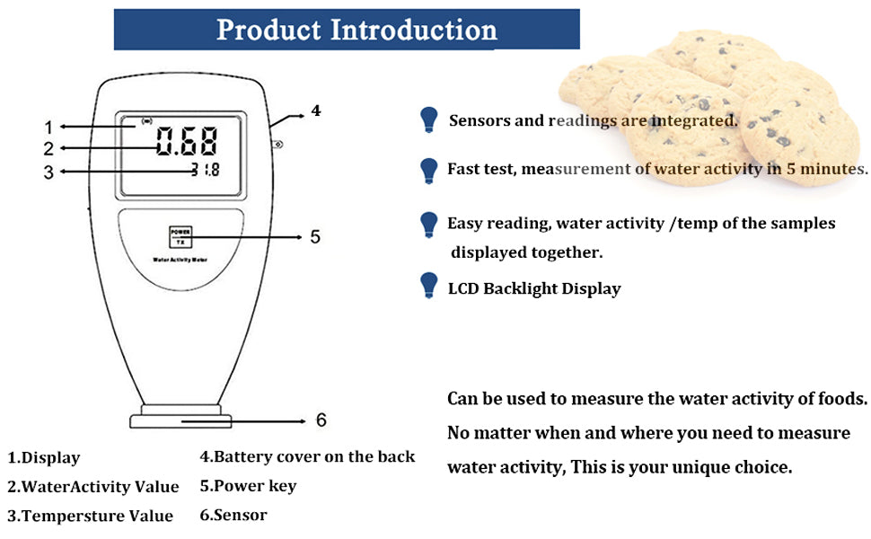 - VTSYIQI Water Activity Meter Food AW Tester Monitor Water Analyzer For Grain Fruits Vegetables Breads Biscuits Cakes Puffed Food 6 bit Backlight Digital Display